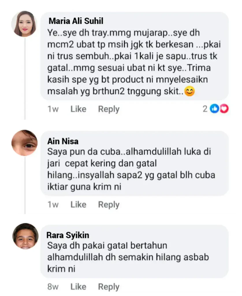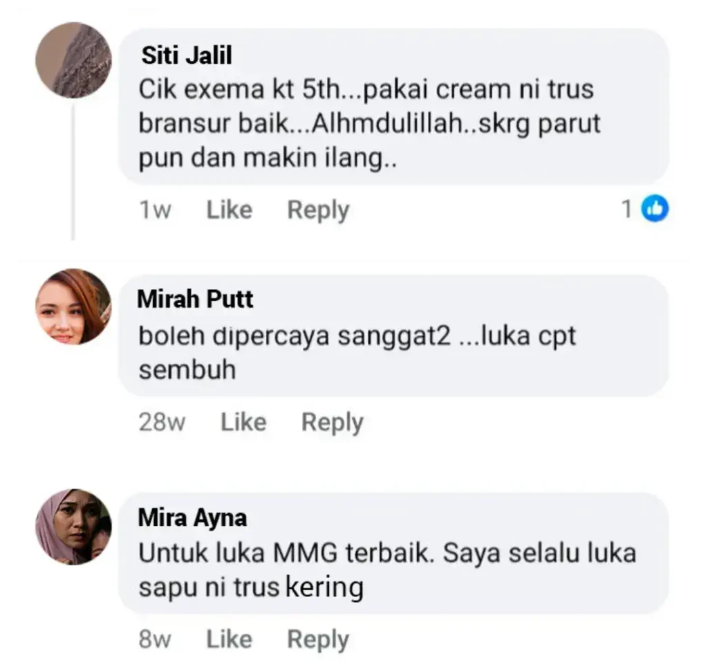 ✅ “Ya! Ramai pengguna dah berjaya hilangkan ekzema, luka & masalah kulit. Lihat testimoni mereka sendiri!”
